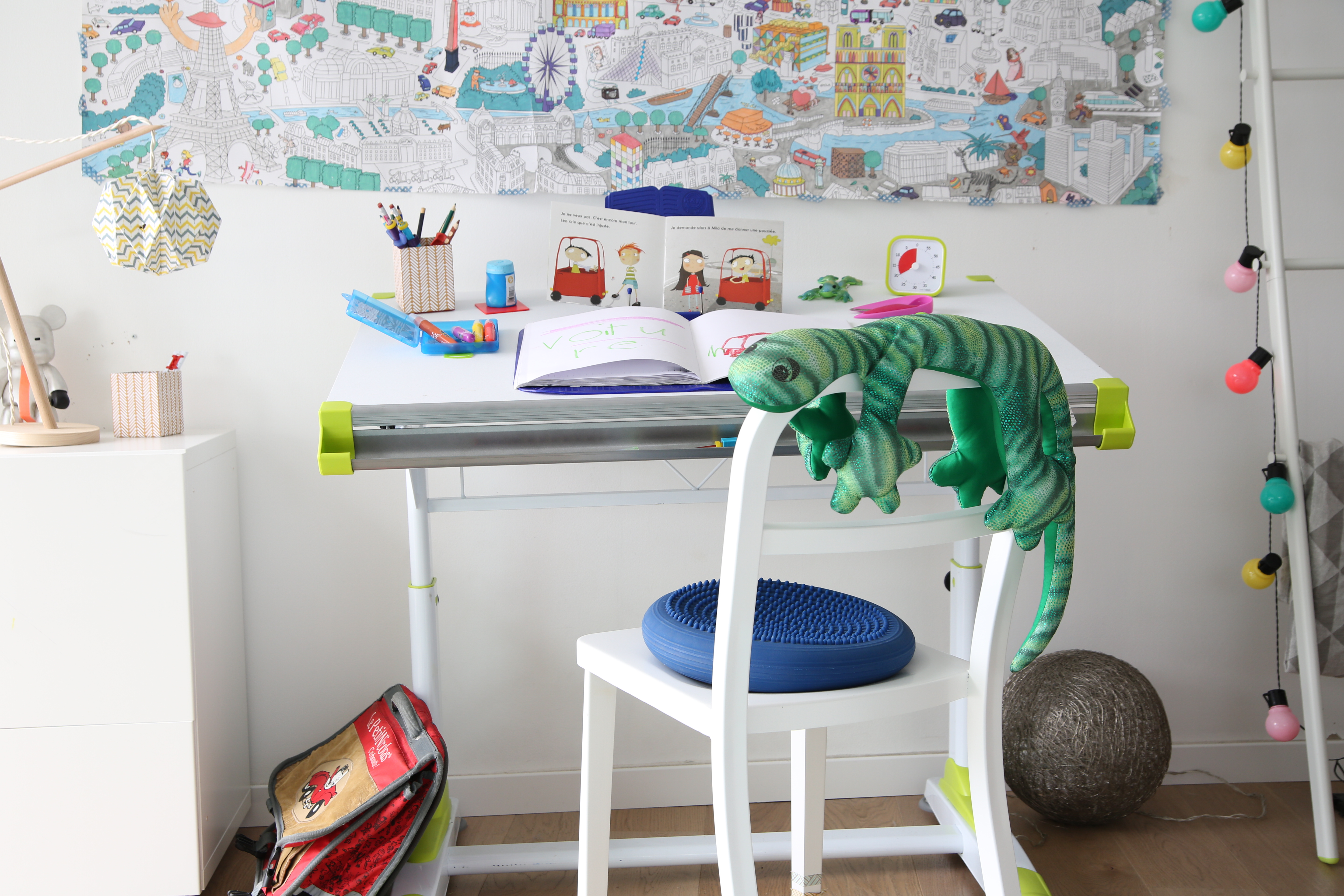 Organisez son bureau, éliminez le plus de parasites visuels et/ou auditifs (ex : pas de télévision en fond sonore). En classe, optez pour la barrière Pop-up qui permet de délimiter un espace personnel, bloquant la vue et les distractions. Utilisez un Timer pour lui apprendre à gérer son temps en le matérialisant visuellement. Et pour éviter toute nuisance sonore, optez pour le casque anti-bruit.