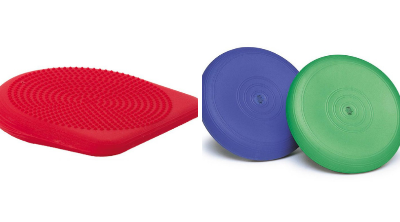 Coussin Dynair rond : Des coussins à gonfler selon les besoins et à poser sur une chaise pour créer une assise dynamique. Cette assise permet alors une meilleure concentration. Ces coussins peuvent s’utiliser aussi dans des parcours d’équilibre.