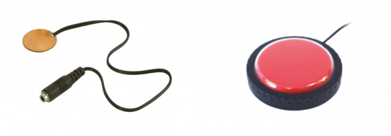 Contacteur personnalisable standard – 6,5 cm : Personnalisez ce contacteur selon vos envies en glissant une image, un pictogramme ou une photo sous le capuchon transparent. Il permet de donner une incitation supplémentaire ou de lier visuellement le contacteur à l’objet branché. Existe en 3 tailles (mini, standard ou maxi) et 4 couleurs (jaune, rouge, bleu, vert) différentes. Dès 3 ans.