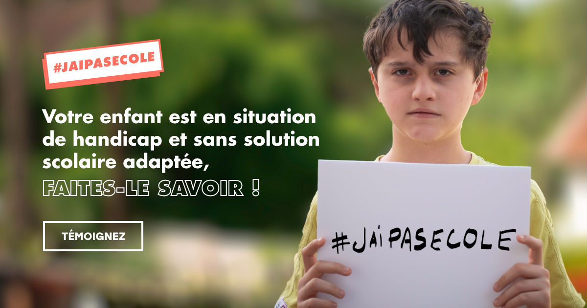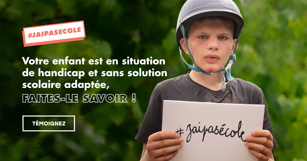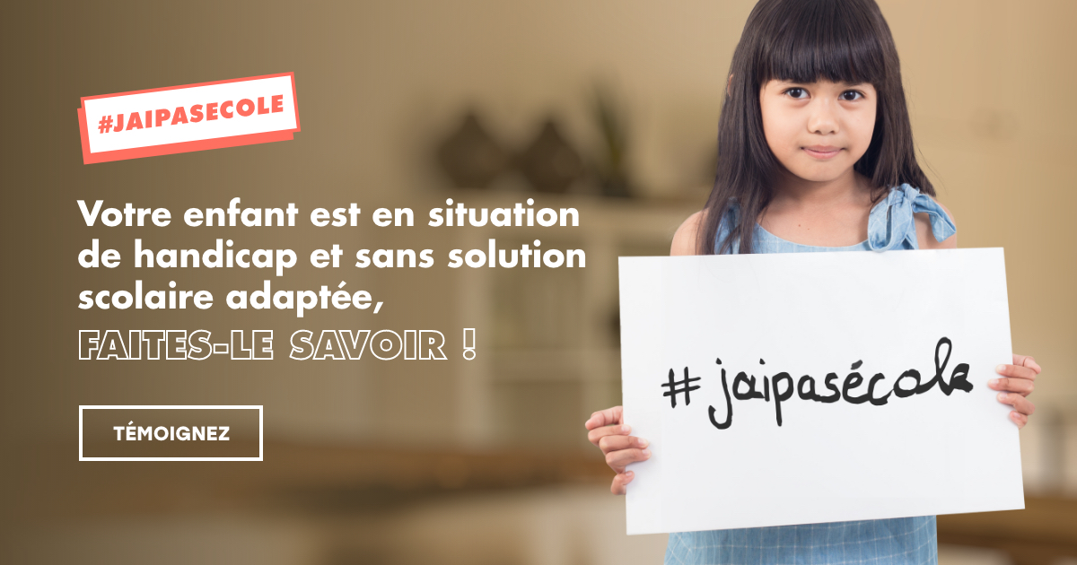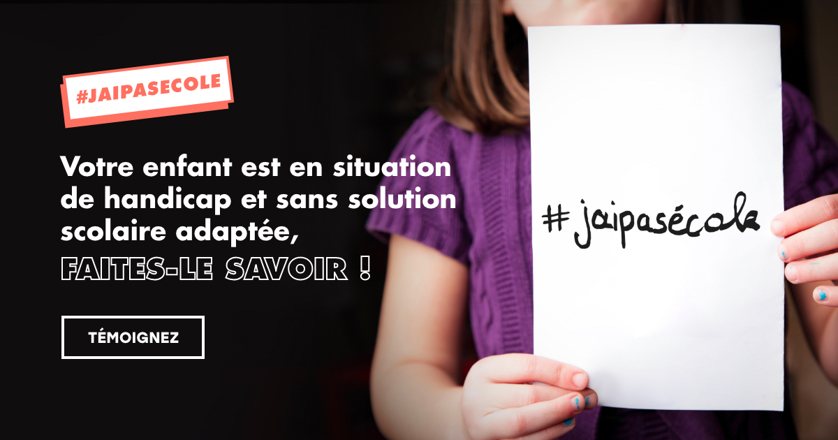 #jaipasecole est une campagne de sensibilisation lancée par l’Unapei et de nombreuses associations qui invite les familles dont les enfants porteurs de troubles ou de handicap ne sont pas scolarisés ou de manière inadaptée et insatisfaisante à témoigner sur le site marentree.org. Elle en était cette année à sa deuxième édition.