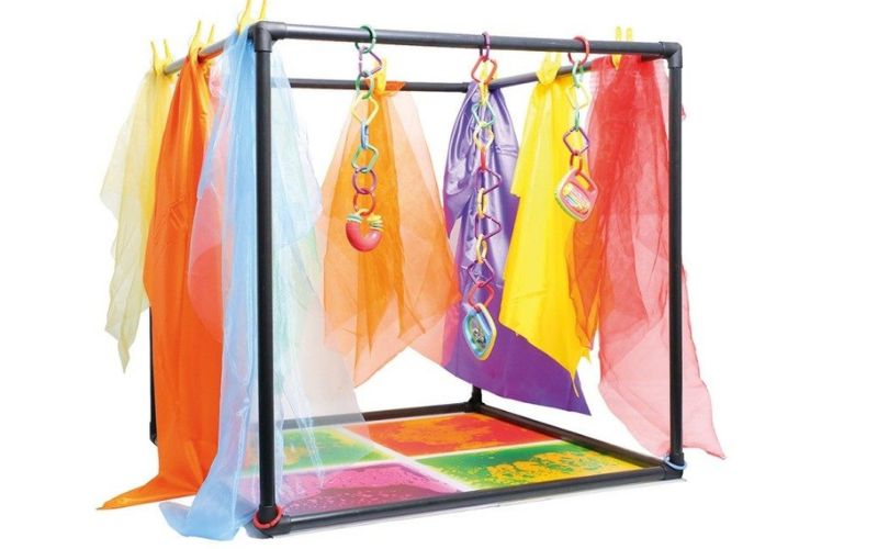 • En salle sensorielle : projeter lumières, ombres, textures. On peut également introduire des éléments changeants pour stimuler la curiosité cordes souples, tissus à déplacer, ou objets-hochets suspendus modulables.
