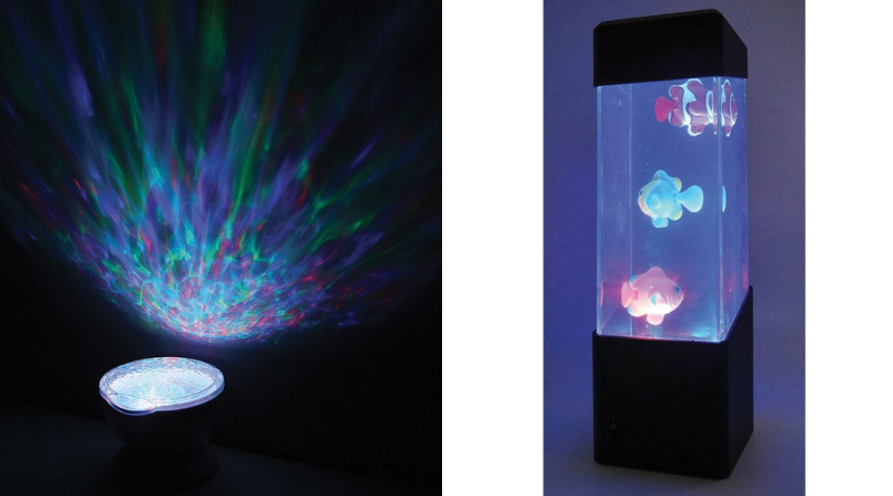 Grâce à l’utilisation de projecteurs vous arriverez facilement à créer un espace sensoriel apportant calme et plaisir sensoriel. Grâce à leurs jeux de lumières, ils créent un univers dans lequel on a envie de plonger et d’y rester. Vous pouvez, en plus vous amuser à créer une salle sensorielle en fonction des goûts de votre enfant grâce aux différents projecteurs. Vous pouvez opter pour un univers spécial océan ou encore univers dans les étoiles.
