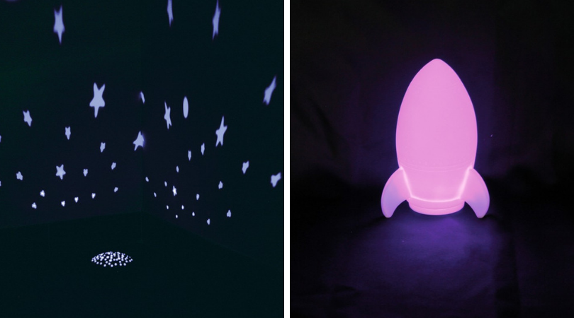 Veilleuse fusée : Une très jolie veilleuse souple en forme de fusée qui s’illumine d’une lumière douce. Il suffit d’appuyer sur l’interrupteur à sa base et la fusée s’illuminera en rouge avant de parcourir une gamme d’autres couleurs comme le bleu ou le vert. Elle sera parfaite pour vos cabanes sensorielles. Prix : 8,90 euros.