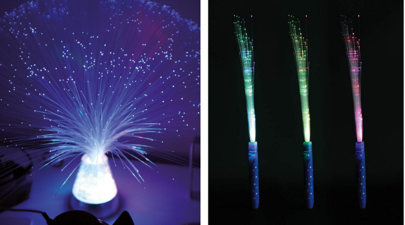 Baguette fibres optiques : Cette baguette présente à son extrémité une fine gerbe de fibres optiques qui s’allume en scintillant ou en changeant de couleurs selon un cycle prédéterminé.